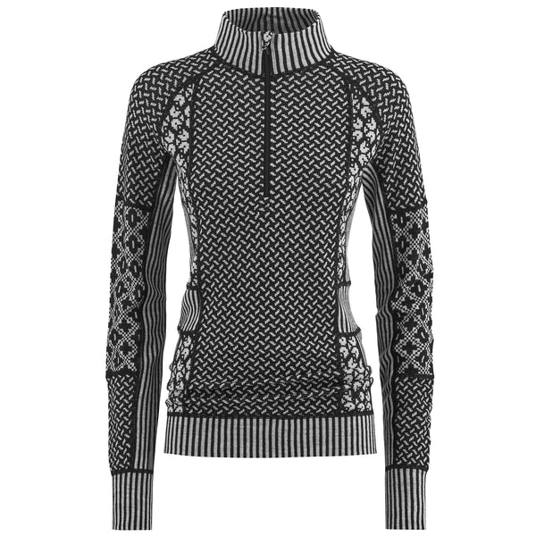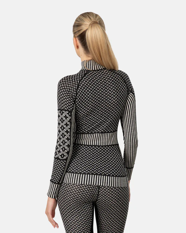 The Kari Traa Smekker Half-Zip is a lightweight, 100% Merino wool women’s baselayer top. Naturally breathable and odor-resistant, Merino wool keeps you warm whether it’s wet or dry and feels great against your skin. Flatlock seams turn up the comfort level when you turn up the heat. And if things get too hot, you can zip down the high collar. Panels of jacquard-knit patterns in different intensities create flattering lines. FIT: Slim silhouette, raglan sleeves, high collar
